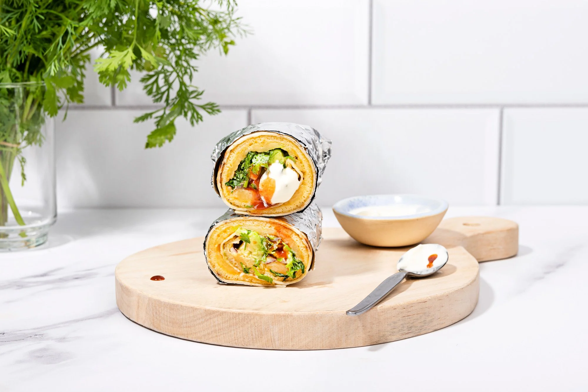 Este burrito de desayuno es super simple y sencillo. Preparar correctamente los huevos y tostar la tortilla hacen que sea particularmente delicioso, sin que sea una receta complicada. Es perfecto para envolver y comerlo al paso. Tiene un relleno clásico de queso derretido, ají y aguacate, pero lo puedes alterar como tu prefieras. Enrolla el queso, proteínas, hierbas y verduras que tengas a mano.