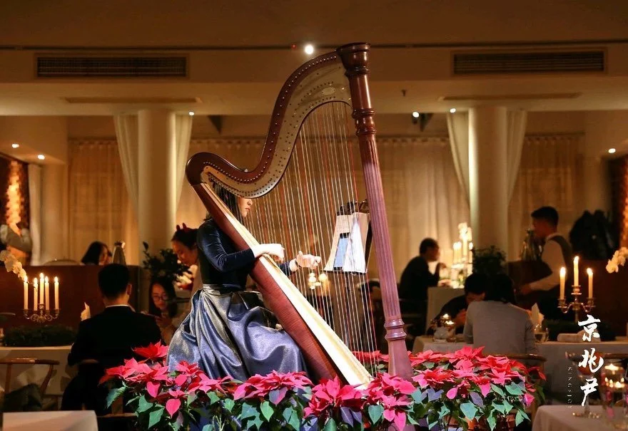 El silencio ceremonial que envolvía el lugar fue interrumpido por algo insólito. Un sonido que venía desde el centro del salón. Allí, sentada con una serenidad admirable, una mujer tocaba el arpa. Sus manos se movían sobre las cuerdas con la misma precisión con la que los cocineros tallaban los vegetales en la cocina. Ella no se movía, no interactuaba con los comensales ni con el servicio. Silenciosamente, ella era la música.